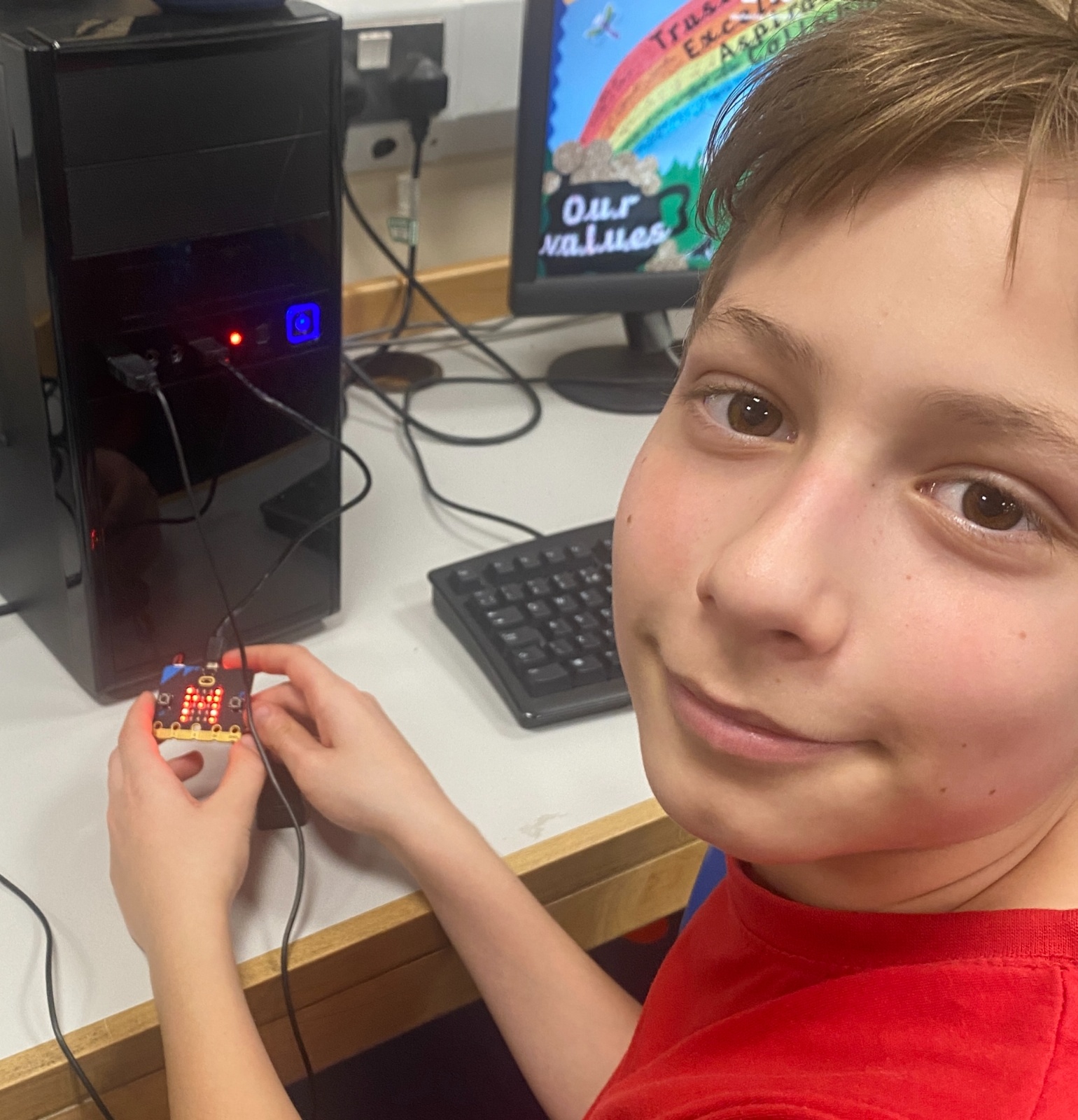 During today’s computing session, the children worked confidently with Micro:bits, developing their coding skills and exploring how digital devices can be programmed to respond, display messages, and perform a range of interactive tasks.